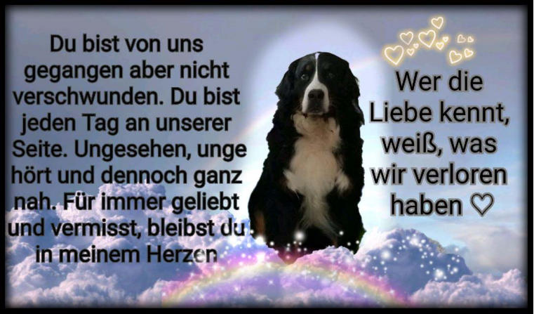 Schokominza wurde am 23.11.2013 bei Angie und Willi inLehrberg (www.bernersennen-franken.de) geboren.Zuchttauglich geschrieben am 06.09.2015Titel Jugendsieger Niederbayern Formwert sehr gutTitel Sieger Straubing Formwert vorzüglichSchokominza war HD/ED/OCD/DM-FreiEltern:Kuma vom Luäg is Land, genannt KimbaTimba vom MüllersgrundSchokominza ist ein weiterer Name von Pippi Langstrumpfund dieser Name war Programm!Genauso wie Pippi war Schokominza immer fröhlich und gut gelaunt, quirlig und voller Energie und heckte schon mal gerne den einen oder anderen Streich aus.Sie konnte einfach alles was sie fand ganz prima gebrauchen! Für sie war das ganze Leben ein einziger Spaß.Bei diesem Hund fiel es einem wirklich schwer ernst zu bleiben, denn sie schaffte es in jeder Situation, uns zum Lachen zu bringen. Wer konnte diesen treuen und wundervollen Augen schon widerstehen?Schokominza war trotz Allem eine pflichtbewusste Bernerhündin, die Haus, Garten und Familie bewachte.Unsere wunderschöne Schokoschnute war eine totale Schmusebacke, auch stundenlanges streicheln genoß sie ohne Ende und konnte gar nicht genug bekommen.Schokominza konnte die ungewöhnlichsten und schrägsten Töne von sich geben, wenn sie die Aufmerksamkeit ihres Menschen mochte, was uns immer wieder zum Lachen gebracht hat.Sie war einfach ein unglaublich toller Hund. .